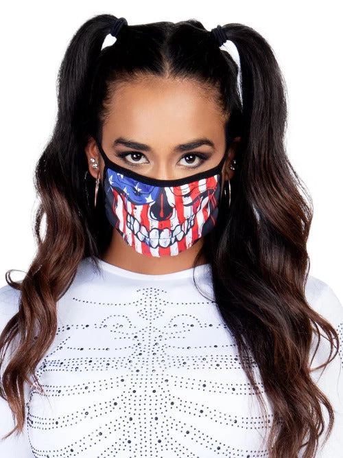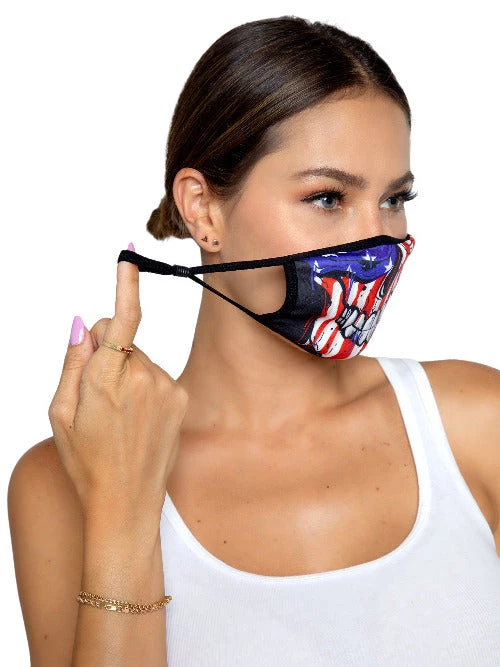 The American Flag Skull unisex reusable face mask features adjustable ear straps for ultra comfort, pocket for a face mask filter, and pairs perfectly with Halloween costumes, spooky everyday looks, festival clothing, rave outfits, and so much more! The vibrant colors and cool designs are guaranteed to make you stand out in the crowd. Can be worn over your surgical mask as a fun fashion accessory or on its own as a protective face mask. These washable cloth face masks are perfect for protection from outside allergens or to wear inside for particle protection.