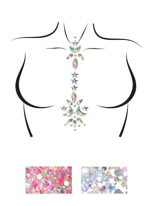 Cascade adhesive body jewels sticker and (2) 3g body glitter packets.