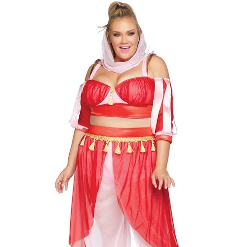 You’ll make every wish come true when you emerge from the bottle in the enchanting 3 PC Dreamy Genie sexy Halloween Costume by Leg Avenue. This iconic 60s costume look includes a off the shoulder bra top, layered harem pants with built-in cheeky shorts, and matching veil.