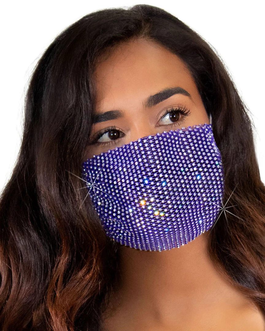 Stand out in the crowd with this gorgeous fashionable face mask, featuring iridescent rhinestones for an unforgettable look at the club, festival, rave, or paired with everyday looks.