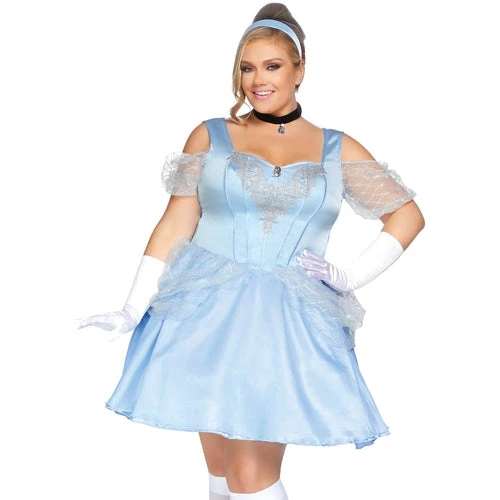 Stay out past midnight in the 3 PC Glass Slipper Sweetie plus size women’s Halloween costume by Leg Avenue. This princess costume look features a cold shoulder mini ball gown that features a jeweled lace applique accent, choker necklace, and matching headband. And don’t worry, no mice were involved in the production of this dress. (Gloves not included)