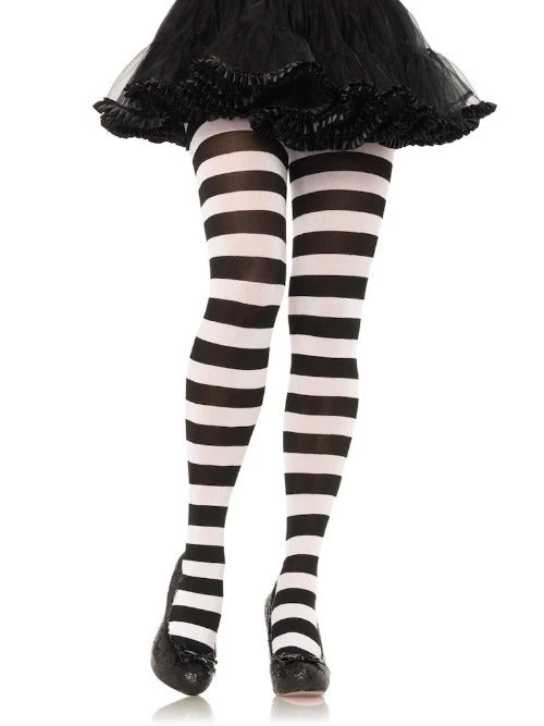 Classic women’s tights with a fun twist: The Darby striped opaque tights by Leg Avenue feature ultra-soft nylon fabric with a solid top and comfortable stretch waistband. The wide stripes make these pantyhose the perfection addition to fall outfits and Halloween costume looks.