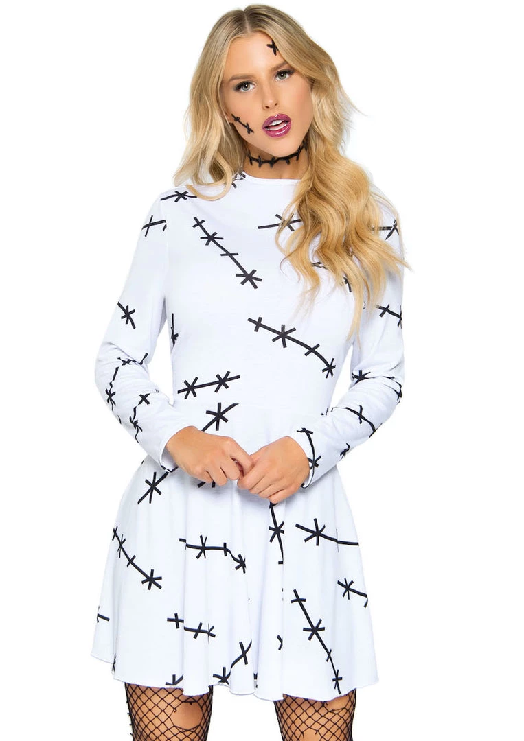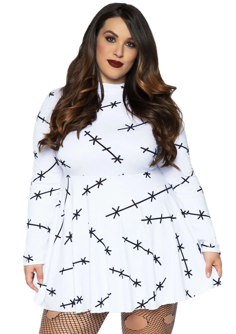 The jersey stitch plus size costume dress by Leg Avenue is the ultimate in comfortable seasonal wear. Create a fun DIY Bride of Frankenstein costume look by adding face jewels and a wig or just pair this adorable t-shirt dress with leggings for an ultra comfy look. Perfect as a women’s Halloween costume for work, school, or just hanging out watching movies. So versatile and cute, you’ll want to wear them year-round.