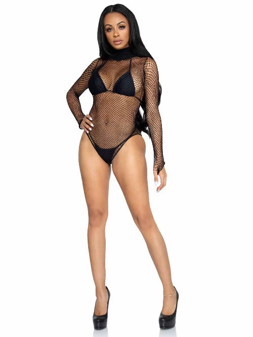 Whether you’re layering or lounging, you’ll look utterly gorgeous when you slip on this sexy lingerie fishnet bodysuit by Leg Avenue. The (anything but) basic black bodysuit features a curve-hugging fishnet, opaque high neck collar and convenient snap-crotch design. From festival outfit to casual layering piece, this sexy lingerie top is a versatile piece for any wardrobe.