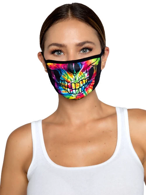 - FIT & STYLE: This tie dye skull Halloween face mask features adjustable ear straps for ultra comfort and acts as a protective face mask for everyday wear or as festival wear and rave gear.
