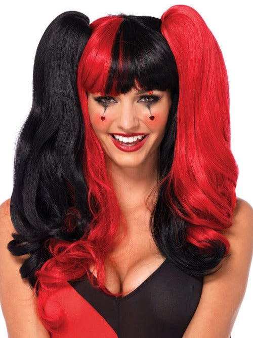 Harlequin wig with clip-on ponytails and adjustable strap.