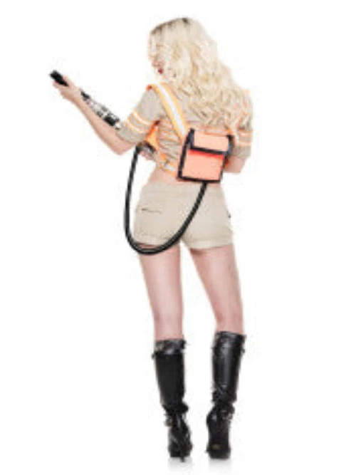 Ghostbuster Addict 4 PC. includes: Short sleeve crop top, beige shorts, matching choker, and backpack (toy weapon not included)
