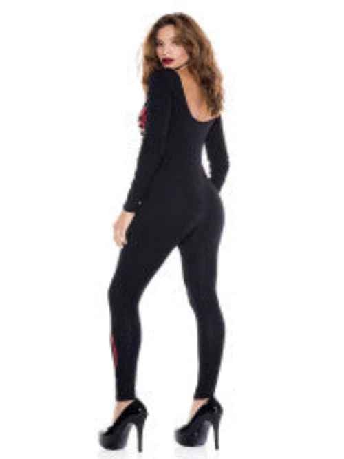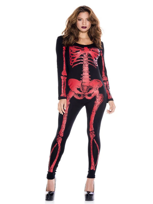 Skeleton Print Catsuit Red – This product includes skeleton print bodysuit. Made up of 95% Polyester, 5% Elastane. Does not include shoes. .