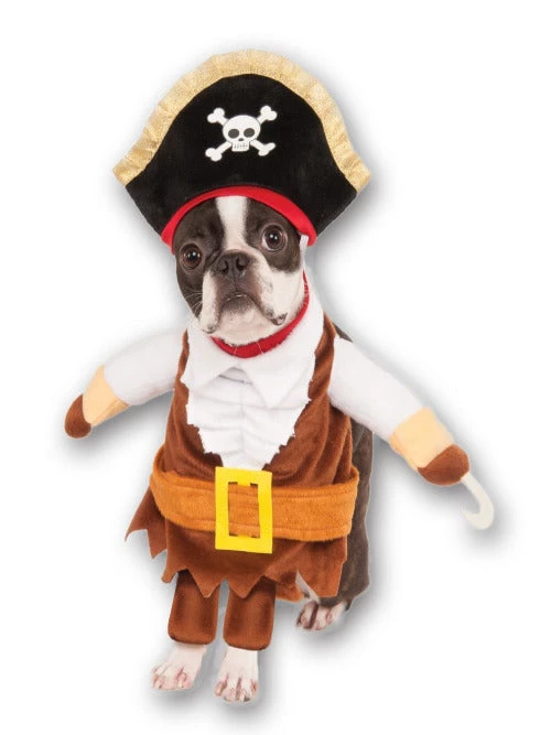 Walking pirate pet costume jumpsuit with false arms and headpiece
