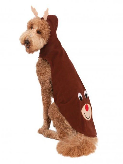 Pet hoodie sweater features reindeer antlers and Rudolph face