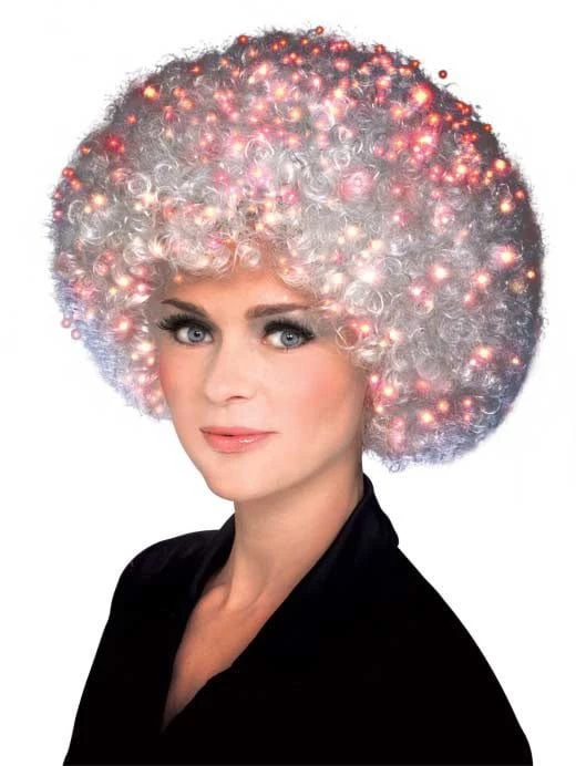 Fiber optic afro wig, available in black or white