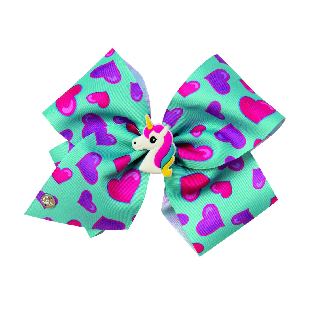 Jojo blue bow with hearts and unicorn charm, clip-on hair braid